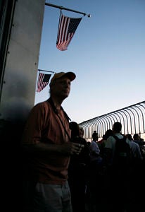 As a veteran of the observation deck, 'Birding Bob' is desensitized to both the view and the commotion, but not the migration. He is slouched over digging through his backpack. The tourists might as well be invisible, however, to see the birds he'll need his binoculars. Tonight though, will be a disappointment. "It's very hit or miss up here," he says. Tonight will be a miss.