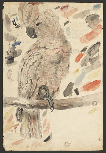 Edward Lear, watercolor study of a Salmon-crested Cockatoo (Cacatua moluccenis), Houghton Library, Harvard University