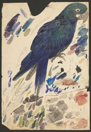 Edward Lear, watercolor study of a Lear’s Macaw (Anodorhynchus leari), Houghton Library, Harvard University