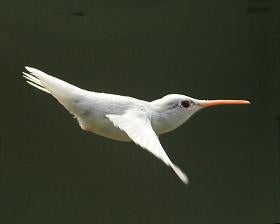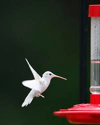 Albinos are hard to come by: Only one in 17,000 humans are believed to have albinism, and there are seven billion of us. Which is why getting pictures of an albino ruby-throated hummingbird – a tough bird to photograph as it is – can be difficult.
