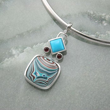Fordite, incorporated in metal with other stones. Courtesy of Devon Fine Jewelry.