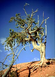 The oldest living tree is a 4,765-year-old bristlecone pine named Methuselah (left). The tree lives in a secret location in California’s White Mountain range.