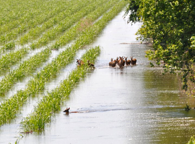 Deer flee the rising water from the Morganza Floodway in the Atchafalaya Basin. Photo: Louisiana Department of Wildlife and Fisheries