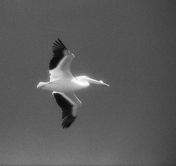 White Pelican with breeding horn, Great Salt Lake, Utah, 2005 The horn on the bird’s upper mandible grows just during breeding season on both males and females. It falls off sometime after their eggs have hatched. © Rosalie Winard