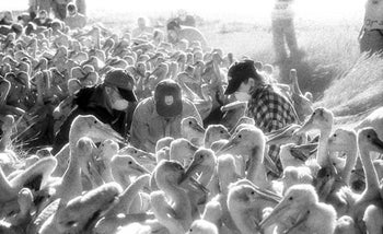 Banding of 3-4 week old white pelican chicks, Chase Lake NWR, Medina, North Dakota, 2003 © Rosalie Winard