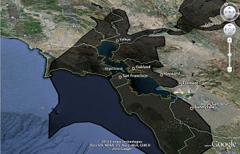 Google Earth engineer Paul Rademacher has created an oil spill map overlay system to give the spill some perspective. Using this new Google Earth function, you can overlay the oil spill onto your hometown to see just how intimidating it is. Here are a few maps for you to contemplate: