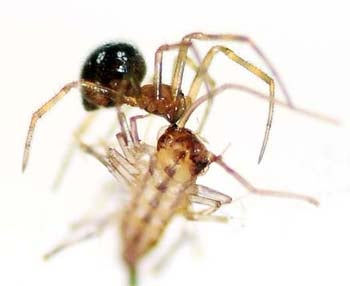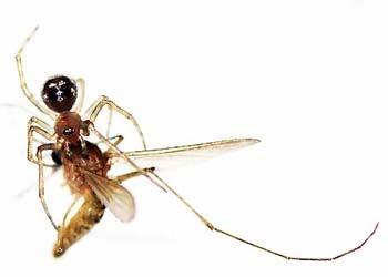 Meet Charlotte, a spider the size of a grain of rice--the fat sushi quality kind, not the long grain, wild kind...but I digress. She calls a corner of my bathroom home, which was pretty sweet real estate since the nearby window (like the rest in the apartment) sported large cracks, providing a plethora of winged prey commuting in from the alley just outside. A week later, however, the windows were replaced, leaving me feeling far more secure. But after a few mornings, I noticed the same old desiccated husk of a bug was still in Charlotte’s web from over two weeks ago. Then I felt guilty, thinking, she's going to starve; how can I let this happen?! Just then, a mosquito dared to land on my head, like manna from the heavens. I made like a V-8 commercial, smacked my skull and the bloodsucker fell to the floor. Picking it up gingerly, I dropped it in to Charlotte's web, quite excited, and waited...for big, fat nothing. The nerve! But then I realized: Oh wait, don't spiders favor live prey? So I softly blew on the web, attempting to create an illusion of struggling prey. Voila, Charlotte scampered over and was on that mosquito like Samantha Jones on a young stud after a few cosmopolitans. Here are some scenes of Charlotte, feasting her fangs out: