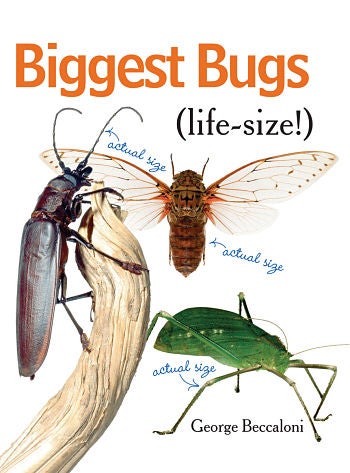 Page 43 of Biggest Bugs (Firefly books) folds outward to accommodate a life-size photograph of the world’s longest insect, Chan’s megastick. It’s 14 inches. That could stretch across some TV screens! If you’ve got an insect (or arthropod)-obsessed kid, she’ll want to see the amazing image of this specimen, not to mention all of the other cool creepy-crawly photos that swarm author George Beccaloni’s book.