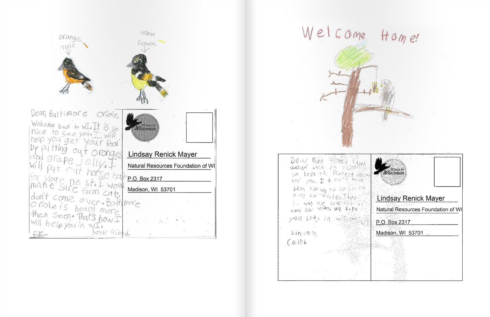 Many of the postcards reflect these teachings: The students discuss putting up feeders, building brush piles, and keeping pets out of nesting areas. Even though the migrants are away for a large part of the year, the kids are still keen on making them feel cozy in Wisconsin. “If you are worried that your habitat is destroyed, don’t worry! Your habitat is still safe,” writes Regan, from Windsor Elementary School, in her letter to the Magnolia Warbler. “Let me know if you need anything. I hope to see you in the woods!”