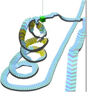 (Scientists tagged humpback whales to collect information about their movement, orientation, and depth. Here, the data is visualized. A close-up of a spiral action when the whale makes a bubble-net. From “Underwater components of humpback whale bubble-net feeding behaviour” by Wiley, et al published in Behaviour 148, 575-602.)