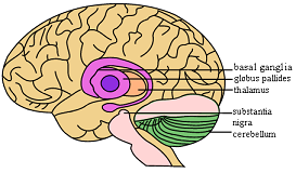 ![]() Location of the basal ganglia and related structures in a human brain. (Photo: John Henkel/Food and Drug Administration) |