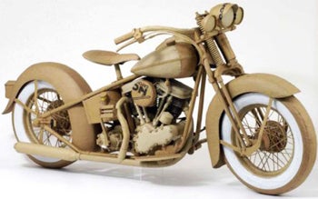 Forts, dollhouses, or makeshift tables are the creations that I used to construct out of used cardboard boxes. Sculptor Chris Gilmour is a bit more ambitious. He takes cardboard that is slated for the recycling center and uses it to make bikes, cars, and typewriters.