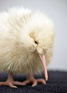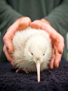 May Day at New Zealand's national wildlife centre was marked by the surprising advent of a white kiwi chick.