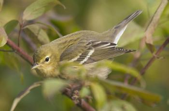 To me, the most impressive of all the fall migrant warblers is the Blackpoll Warbler. It's named for the black-capped spring plumage of the adult male; Blackpolls in fall are all dull greenish. But their feats of migration are anything but dull. Blackpoll Warblers nest in the boreal forests of Alaska and Canada (and the extreme northern edge of the Lower 48) and winter mostly in the Amazon Basin of South America. Their spring migration brings them north through the Caribbean and Florida. In fall, though, they move strongly eastward before they head south, some apparently coming all the way across Alaska and Canada to the northeastern coast of the United States. From there, after feeding heavily to take on fuel for their flight, they take off and fly nonstop to the northern coast of South America -- a flight that may cover 2500 miles and take more than three days! Although I've known about this for years it still boggles my mind to think that this little bird, weighing less than an ounce, can undertake such a monumental journey. The Blackpoll Warblers that I've been seeing on the northern edge of Ohio during the last few days may have already come all the way from Alaska, but their major flight is still ahead of them. It's no wonder that the stopover sites along Lake Erie have been designated as Important Bird Areas by Audubon Ohio.