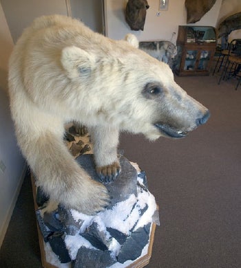 The melting of the Arctic ice pack due to global warming, scientists say, may cause a hybrid of the polar bear and grizzly bear to become fairly common as their habitats increasingly overlap. Arctic biologist George Divoky has dubbed the brownish-white bruin the "grolar bear.' "Grizzlies are moving north while at the same time the polar bears are forced to be on the beach, Divoky said, "and we've found a number of grizzly-polar bear hybrids." DNA tests on one animal shot in the Northwest Territories confirmed that it was fathered by a male grizzly and a female polar bear. If there is a plus side, according to Divoky, genes of the endangered polar bear would be preserved in the grizzly population. Divoky is a research associate with the Institute of Arctic Biology at the University of Alaska-Fairbanks.