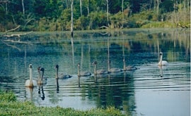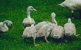 ![]() June 2001, some of George and Gracie's cygnets. Photo: Joyce Miller |