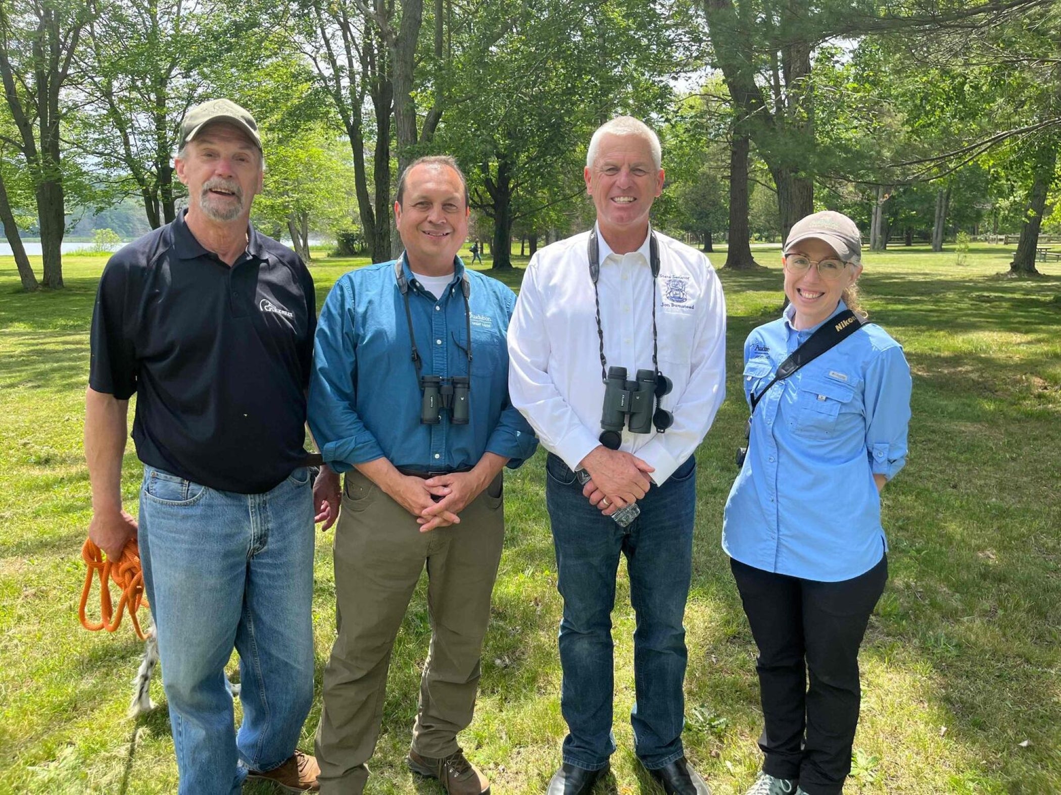 On Friday, June 10, Audubon Great Lakes representatives led the bird walk accompanied by Beth Miller, President for Muskegon County Nature Club and volunteer for Audubon Great Lakes; Wendy Ogilvie, Director of Environmental Programs for Grand Valley Metro Council; Jason Shamblin, Parks and Recreation Director for Ottawa County Parks and Recreation; Sara Rose, Office Manager for Western Michigan Environmental Action Council; Dave Bowers, State Policy Chair for Michigan Ducks Unlimited; and representatives from the Michigan Department of Natural Resources.