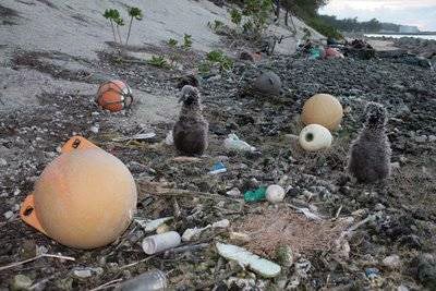 Though the movie is not out yet, you can go view the trailer. It opens with a quote from Coleridge’s Rime of the Ancient Mariner (the inspiration for our expression about the albatross round someone’s neck), then shows us Laysan albatrosses with their chicks, which resemble speckled dust bunnies with bright, inquisitive eyes. We are introduced to the mounds of feathers, bone and plastic that were once young albatrosses, and catch glimpses of Jordan pulling junk from dead chicks’ stomachs. All of these images promise a heartbreaking documentary that is likely to become lodged in its viewers’ minds as snuggly as plastic in an albatross chick’s stomach.