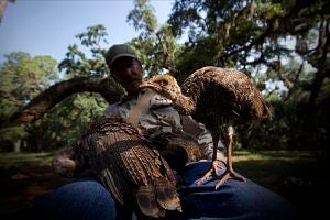 ![]() Jeff Palmer (who plays Joe Hutto in the documentary) walking with his turkeys. Photo: Courtesy of PBS. |