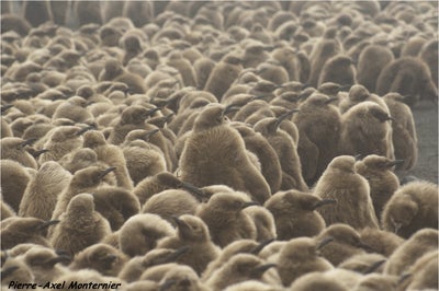 King penguin chicks huddle for warmth. Photo: Pierre-Axel Monternier |
