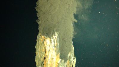 First photograph of the world's deepest known 'black smoker' vent, erupting water hot enough to melt lead, 3.1 miles deep on the ocean floor. Credit: NOC