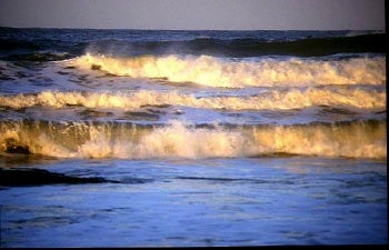 A glimpse of the ocean in a certain light, a forest’s moist interior, or a distant mountain under snow, often brings back to me stirring passages in a book by a favorite author. In a recent blog I quoted from one of those books, Henry Beston’s The Outermost House. Beston spent a year during the late 1920s living alone, Thoreau-like, in a little house on the Great Beach of Cape Cod, writing about its birds, gales, and tides. As I watch the surf roll in here on another kind of beach, I’m continually reminded of Beston’s meditations on ocean waves. A naturalist and a poet, he detected the individual wave as an illusion, pointing out that “the distant water has not left its place in ocean to advance upon me, but only a force shaped in water, a bodiless pulse, a vibration.”