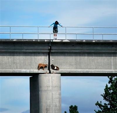 Sandy Church, Rimrock Humane Society president, told the AP that they probably wandered onto the ledge at night then froze in fear after the sun rose and they discovered where they were.