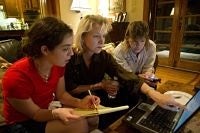 ![]() Volunteers Elizabeth Gibert (left) and Lexie Montgomery meet with Melanie Driscoll (far right) to discuss mobilizing volunteers. Photo: Kim Hubbard/Audubon Magazine |