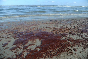 Red waves of oil crested to the beach. Photo by Kim Hubbard/Audubon