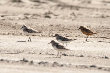 A sanderling was among many birds we saw who had been stained orange with oil. Photo by Kim Hubbard/Audubon