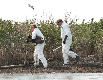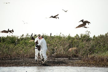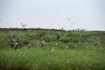 The biologists discovered an oiled pelican on the island. Photo by Kim Hubbard/Audubon Magazine