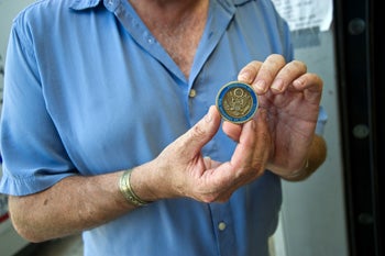 ![]() Jay Holcomb shows the medal that was presented by Interior Secretary Ken Salazar when he visited the center. Photo by Kim Hubbard/Audubon Magazine |