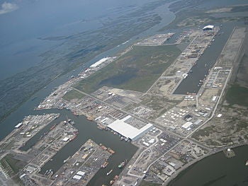 Port Fourchon is a jarring feature along the central Louisiana coast, the underbelly of an industry that literally fuels the nation. (Photo by Justin Nobel/Audubon Magazine; flight provided by SouthWings)