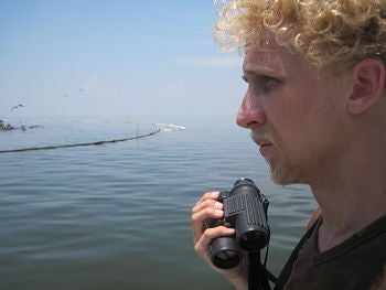 Audubon's David Ringer glumly examines one of the oiled Cat Bay pelican colonies. (Photo by Justin Nobel/Audubon Magazine)
