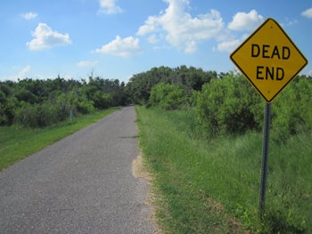 Several cleanup workers were sleeping in their cars at the end of this street in Grand Isle until police kicked them out. Rumors of the incident spread, one was that a group of convicts was squatting in the woods. (Photo by Justin Nobel/Audubon Magazine)