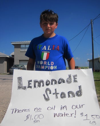 Domanick, 11, runs a lemonade stand in Grand Isle. The town has become America's poster child oiled beach community, but beneath the surface racial tensions are simmering. (Photo by Justin Nobel/Audubon Magazine)