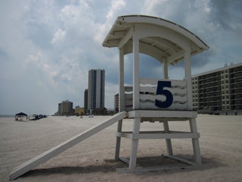 Further east is Gulf Shores, an Alabama beach town loaded with surf shops and seafood restaurants. Peach and cream colored condo towers bookend the public beach, which is wide as a football field and mostly empty. A sign in the parking lot advises the public not to swim because of “the presence of oil-related chemicals.” In a gazebo at the top of the beach, I meet the Brown’s, a family of four who have just driven from Selma, four hours to the north. They have been vacationing here since their two college-aged girls, Helen and Hays, were infants. “You’re usually stepping over people to get to the beach,” says Helen. I ask why they didn’t go elsewhere this year. “We live in Alabama, so this is where we go,” says Helen's mother Susannah, almost in tears. “I don’t even want to go out there,” she says.