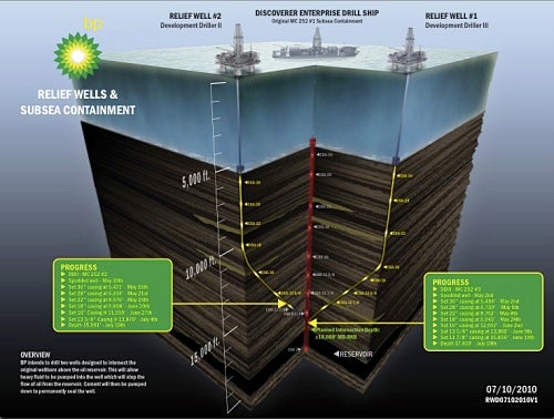 | “We’re encouraged by this development, but this isn’t over. Over the next several hours we will continue to collect data and work with the federal science team to analyze this information and perform additional seismic mapping runs in the hopes of gaining a better understanding on the condition of the well bore and options for temporary shut in of the well during a hurricane. It remains likely that we will return to the containment process using this new stacking cap connected to the risers to attempt to collect up to 80,000 barrels of oil per day until the relief well is completed.” |