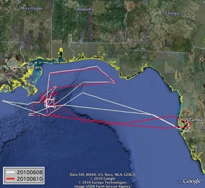 NOAA's flights over the Gulf in June. (Photo: Courtesy of NOAA) |