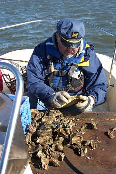 Culling oysters. Credit: Rob Warner (NOAA), Roger Fay (TDI Brooks)/NCCOS