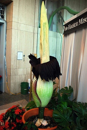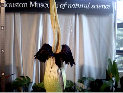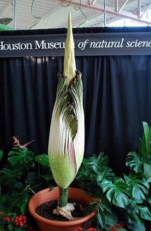 ![]() Now that the spadix has collapsed, the corm (the base of the plant that is under the dirt) will reabsorb as much of the flower as possible before it goes into dormancy. Photo: Houston Museum of Natural Science |