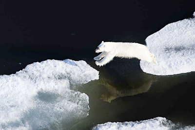 One of the most recognizable faces of climate change, polar bears must swim longer distances to reach solid sea ice as warmer temperatures create larger stretches of open water. If current warming trends continue, scientists estimate that polar bears may become extinct from most of their range in less than100 years. Beaufort Sea, Alaska. ©Florian Schulz / visionsofthewild.com