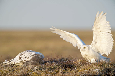 Earthjustice and other conservation groups have been working to protect the Arctic by curbing oil and gas development in sensitive regions. These snowy owls will feed their chicks as much as possible during the short summer months before winter sets in Barrow area, Alaska. ©Florian Schulz / visionsofthewild.com