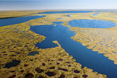 Few people expect to see so many wetlands and lakes dotting the Arctic landscape, yet the region is home to countless lakes and some of the most productive wetland systems in the world. These wetlands are near Teshekpuk Lake, a critical area for migrating bird species. Teshekpuk Lake area, Alaska. ©Florian Schulz / visionsofthewild.com
