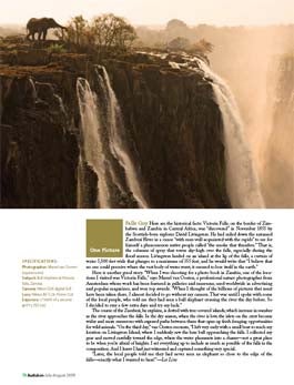 “When I was shooting for a photo book in Zambia, one of the locations I visited was Victoria Falls,” says Marsel van Oosten, a professional nature photographer from Amsterdam whose work has been featured in galleries and museums, used worldwide in advertising and popular magazines, and won top awards. “When I thought of the billions of pictures that must have been taken there, I almost decided to go without my camera. That was until I spoke with some of the local people, who told me they had seen a bull elephant crossing the river the day before. So I decided to stay a few extra days and try my luck.” To read more about van Oosten's pursuit, click here. [article by Les Line, photograph by Marsel van Oosten, Audubon magazine]