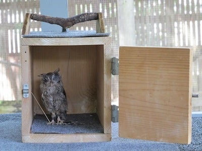 An eastern screech owl at the center. Photo credit: Justine E. Hausheer