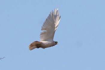 A partially albino red-tailed hawk. About one in every 1,800 birds exhibit albinism, according to an Audubon bird book. (By Allan Whiteman)