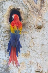![]() A scarlet macaw adult visits its nest in Guatemala's Maya Biosphere Reserve. Credit: WCS Guatemala Program |