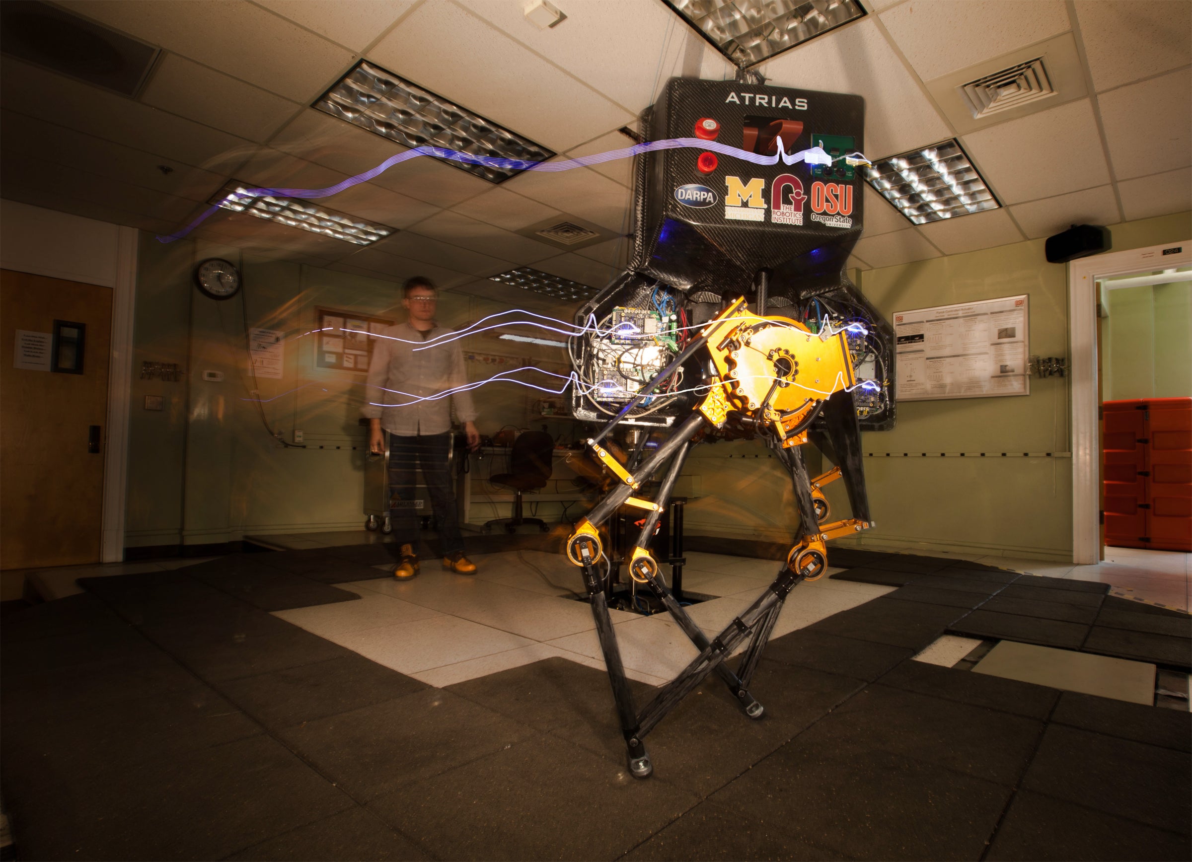 The avian inspiration has paid off so far, with ATRIAS well on its way to handling obstacles like a bird. “ATRIAS is the first machine to reproduce the dynamics of animal walking,” Hurst says. Even though it’s still nowhere as fast as a running Ostrich (which can clock in at 40 mph), it can remain upright even when kicked.