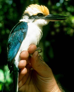 The Micronesian kingfisher is one Guam’s native species of birds that was eliminated by alien brown tree snakes. Photo: By Dylan Kesler/ CC BY-SA 3.0